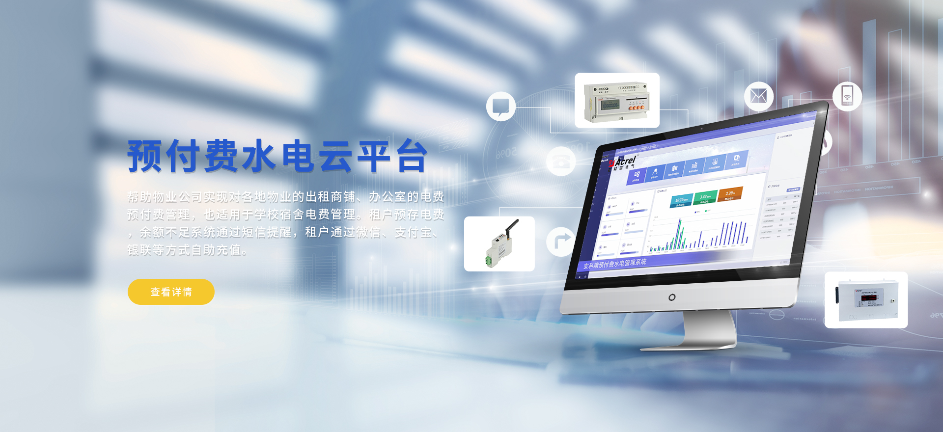 安科瑞提供的解決方案包括Acrel-EIoT能源物聯網云平臺變電所運維云平臺、安全用電管理云平臺、環保用電監管云平臺、智慧消防云平臺、能源管理云平臺、工業企業能源管控平臺、遠程預付費云平臺餐飲油煙監管云平臺、電動汽車/電瓶車充電樁收費管理云平臺、電力監控/無線測溫系統、電能質量治理系統、電氣火災監控系統、消防設備電源監控系統防火門監控系統、應急照明和疏散指示系統、智能照明控制系統、醫用隔離電源絕緣監測系統等,幫助用戶實現能源智能化、可視化、精細化管理,提高用能效率和用能安全,為企業節能降耗和實現能源數字化建設提供數據服務。